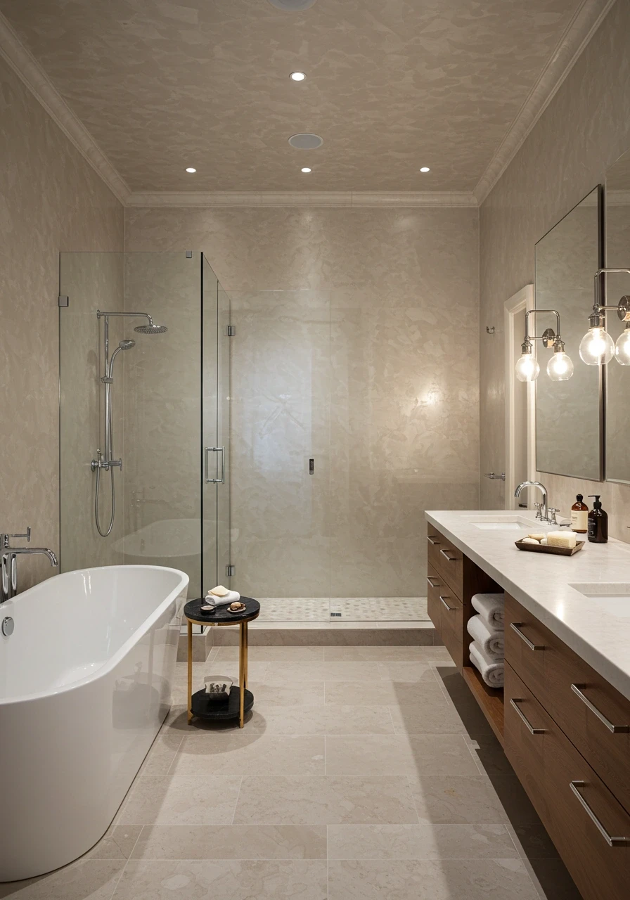 We create timeless luxury with authentic Venetian plaster finishes that turn ordinary walls into lustrous works of art. Our skilled artisans apply this centuries-old Italian technique using natural limestone plasters to create surfaces with extraordinary depth, subtle sheen, and tactile elegance. From polished marble-like finishes to textured old-world effects, our Venetian plaster enhances residential and commercial spaces with a sophistication that cannot be achieved with conventional wall treatments.